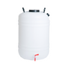 Fermentador plástico sanitario con válvula para salida de la cerveza.