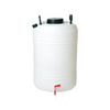 Fermentador plástico sanitario con válvula para salida de la cerveza.